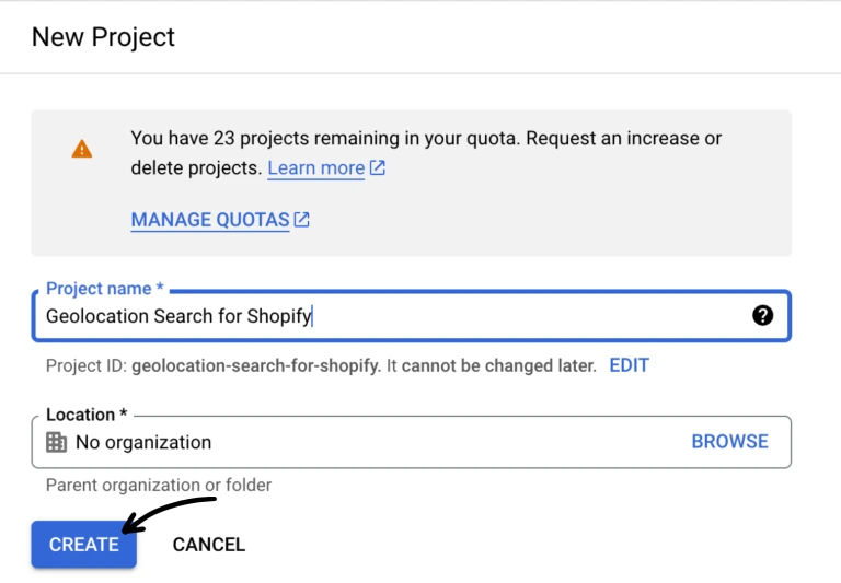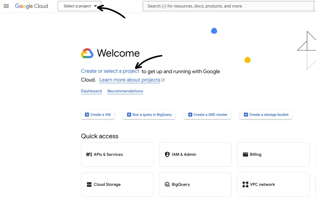 Step 3: Create a new project in your GCC dashboard or select an existing one (see the screenshots below).