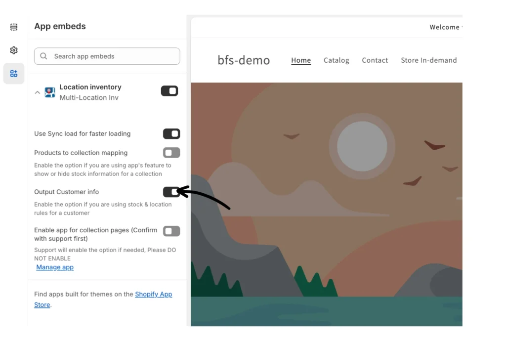 1. Navigate to Online Store > Themes > Customize > App Embeds.