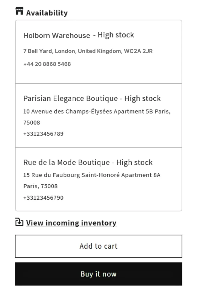 The restriction applies when adding to the cart. If stock is unavailable at the mapped location, customers will see an error message on the product page when they click Add to Cart.