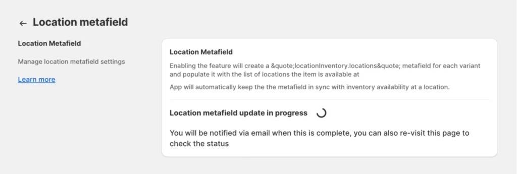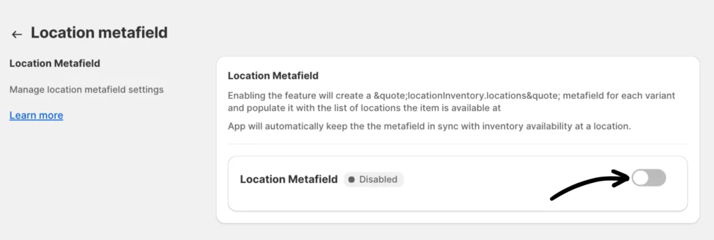 Then, toggle the bar to enable the Location Metafield option.