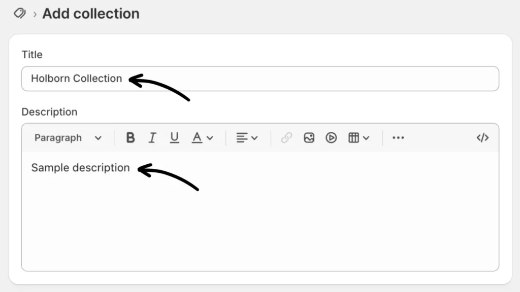 Navigate to the Products section on your Shopify admin dashboard and create a collection of products you want to designate for a specific location. You can do that by clicking Products > Collections > Create collection.